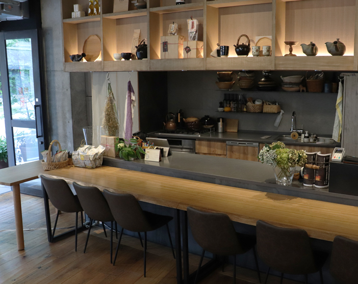 器や土鍋が並ぶお店ですが、入り口すぐにカウンターがあって一見、飲食店のようにも見えます。