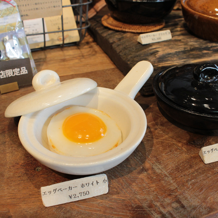 電子レンジで簡単に目玉焼きが作れる「エッグベーカー」小さな土鍋は器としてそのまま食卓に出せる。