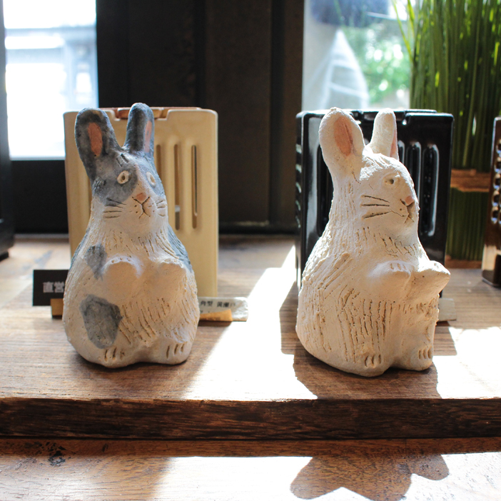 何とも言えない表情とフォルムが愛らしい陶器のうさぎ。