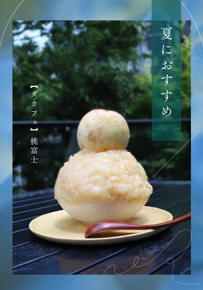 桃ヨーグルトと桃コンポート、てっぺんには丸ごとの桃が君臨した贅沢なかき氷。