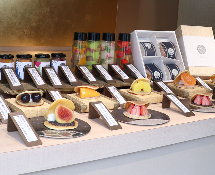 店頭にはどらやき、ゼリーなど色鮮やかなフルーツが目を惹く和菓子が並びます。