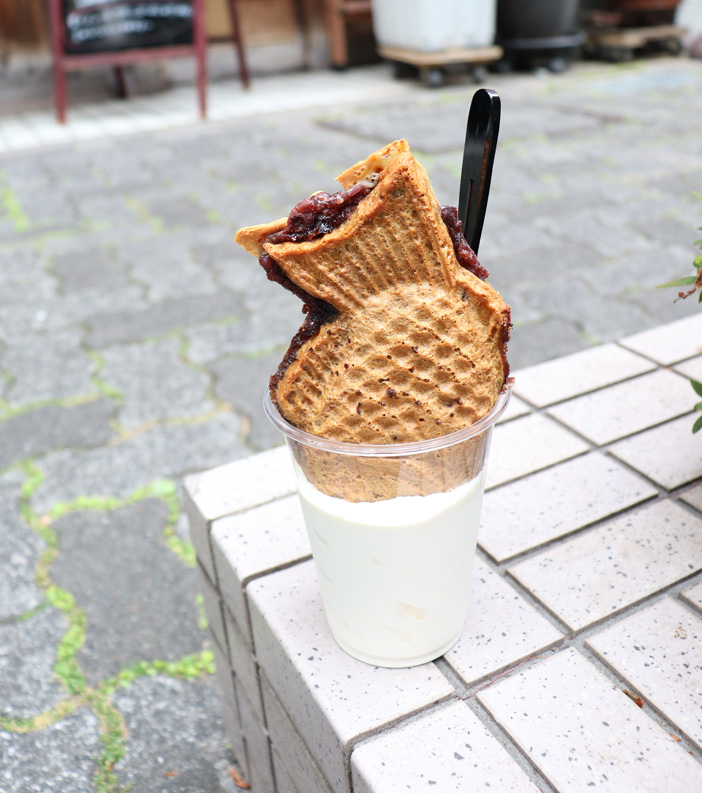 こちらは「たいやきソフト」で、更に餡子や白玉串などトッピングも可能。