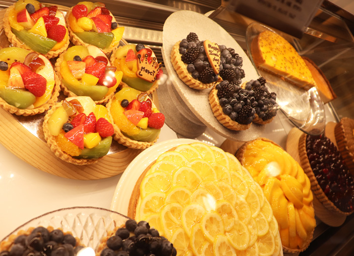 店内に入ると大きなショーケースの中から色とりどりのタルトがお出迎えしてくれます。