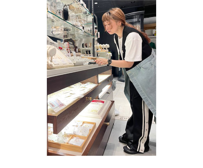 洋服だけでなくアクセサリーやバッグ等小物も沢山あるので、いつ来ても何か欲しくなるようなブランドです。