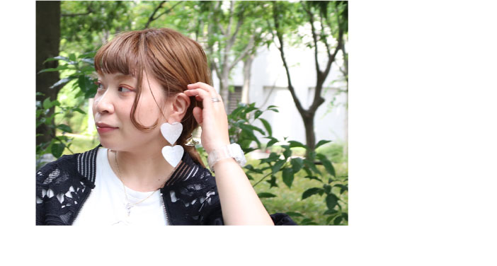 大きいハートモチーフのピアスは、コーデのアクセントになる存在感がお気に入りです。