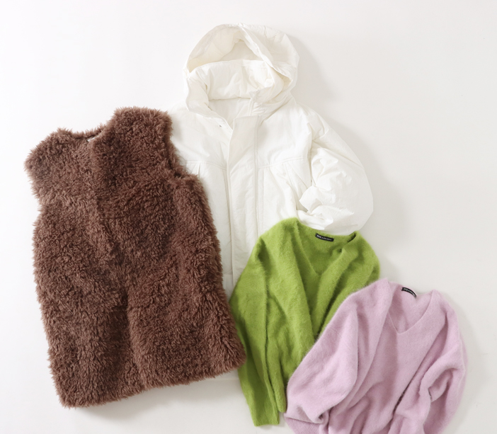 つい触りたくなるふわふわニットやモコモコしたカーディガンなど感度の高いアイテムが揃いました。