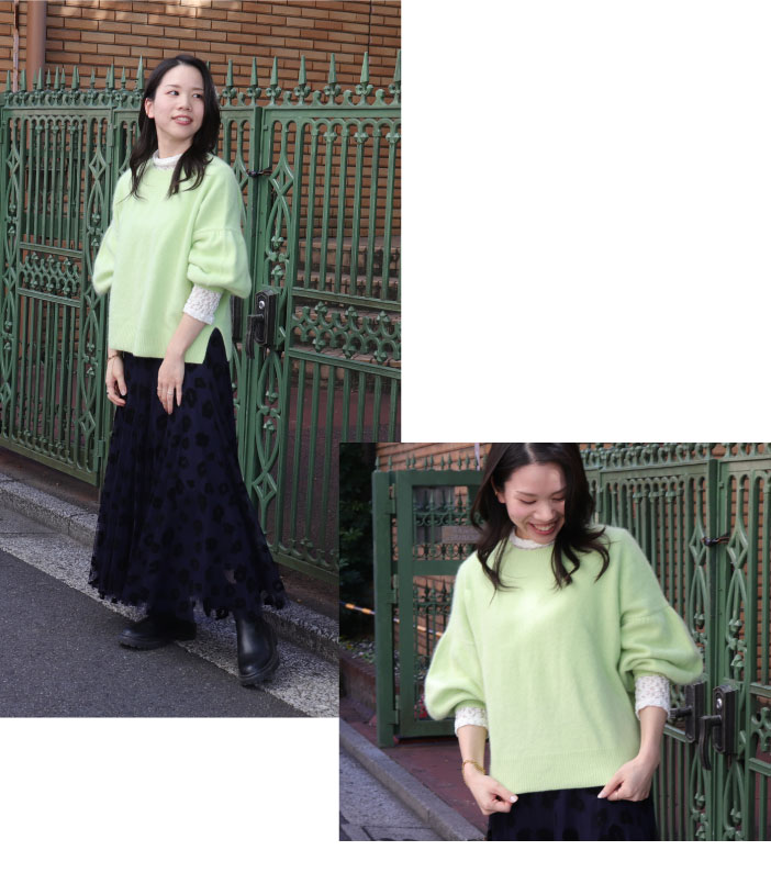 ニットはグリーンカラーにひとめ惚れして即ゲットしました!