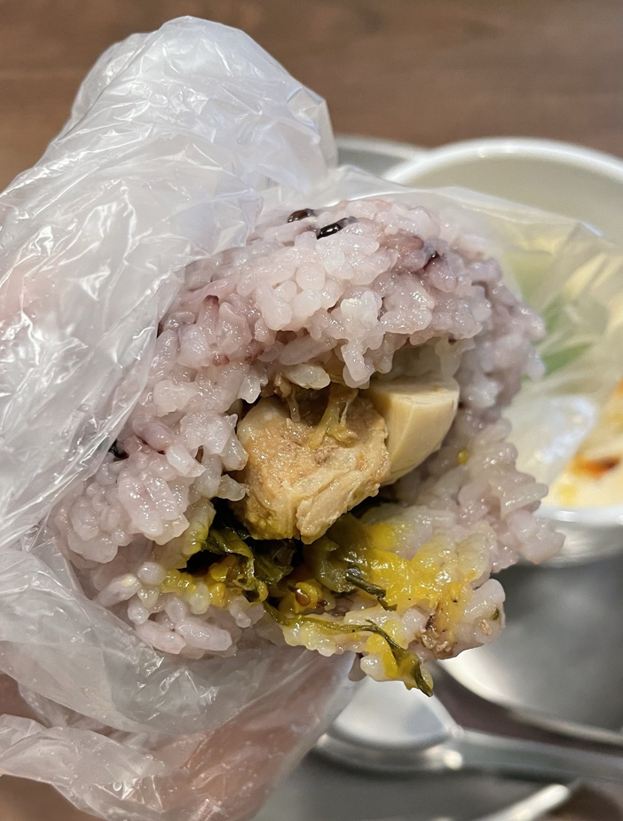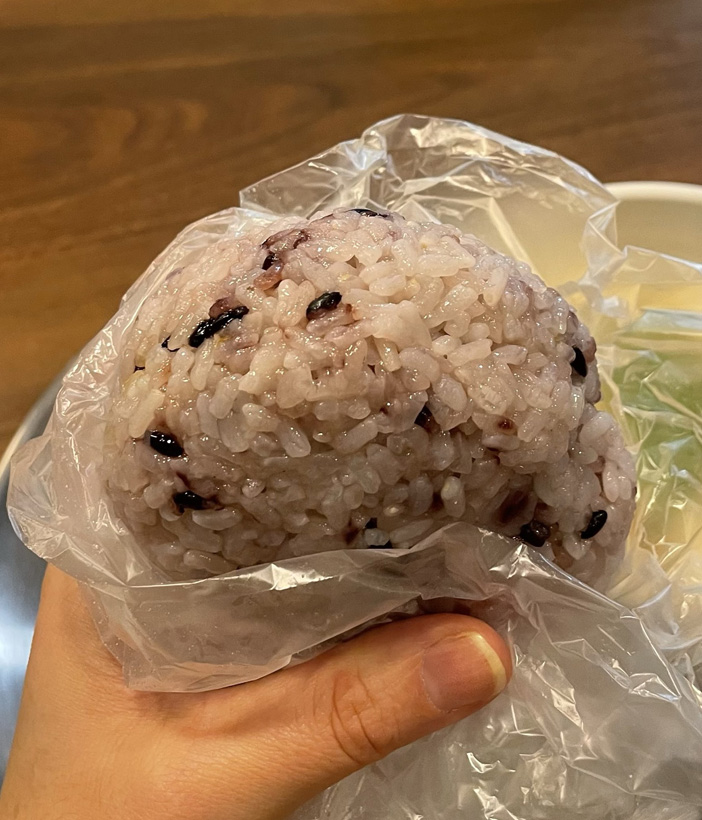 日本のおにぎりと違って握るというより包んでいる感じ。