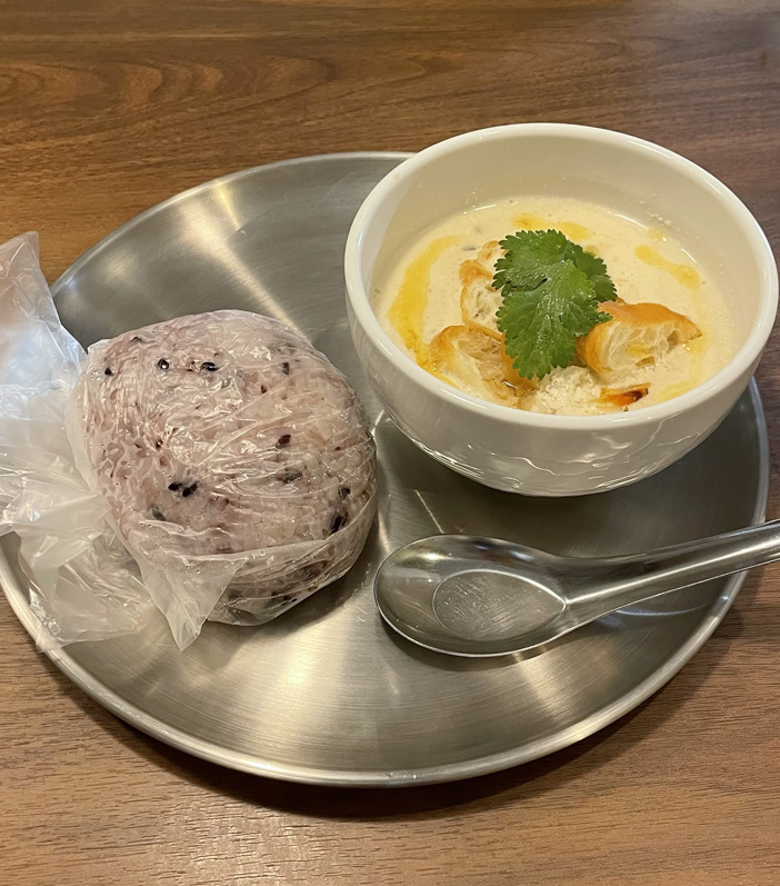写真は鹹豆漿(シェントウジャン)と台湾おにぎり。