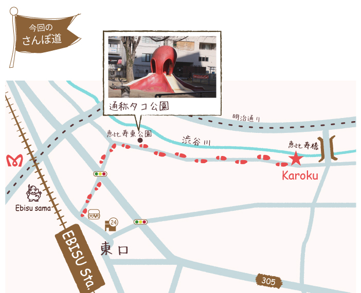 お店の看板の一部。地図が恵比寿さんぽに負けず劣らず簡素!