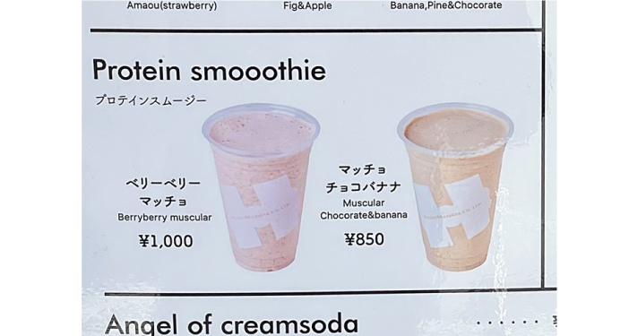 可愛い見た目のスムージーなのにマッチョなネーミングがギャップ萌え。
