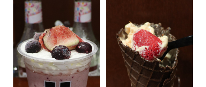 美容効果のある黒イチジクはスパイシーな大人味、トマトは果肉入りでクリームの中にさっぱりしたシャキシャキ感を楽しめます。