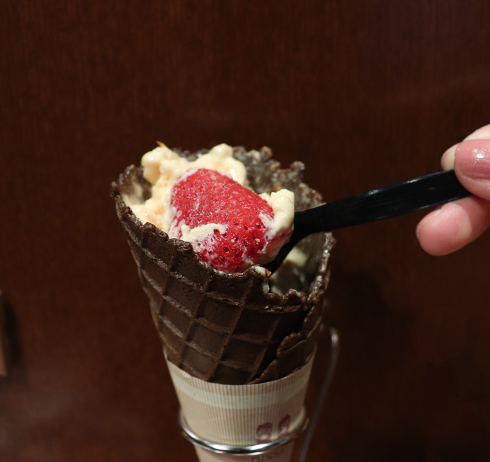 アイスの底に冷凍フルーツが隠れてて嬉しいサプライズ。