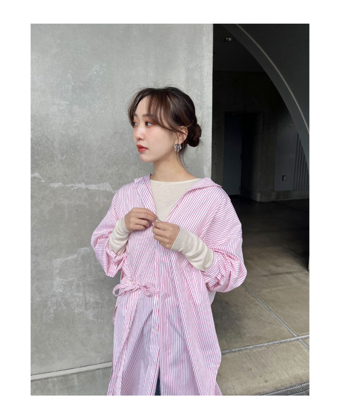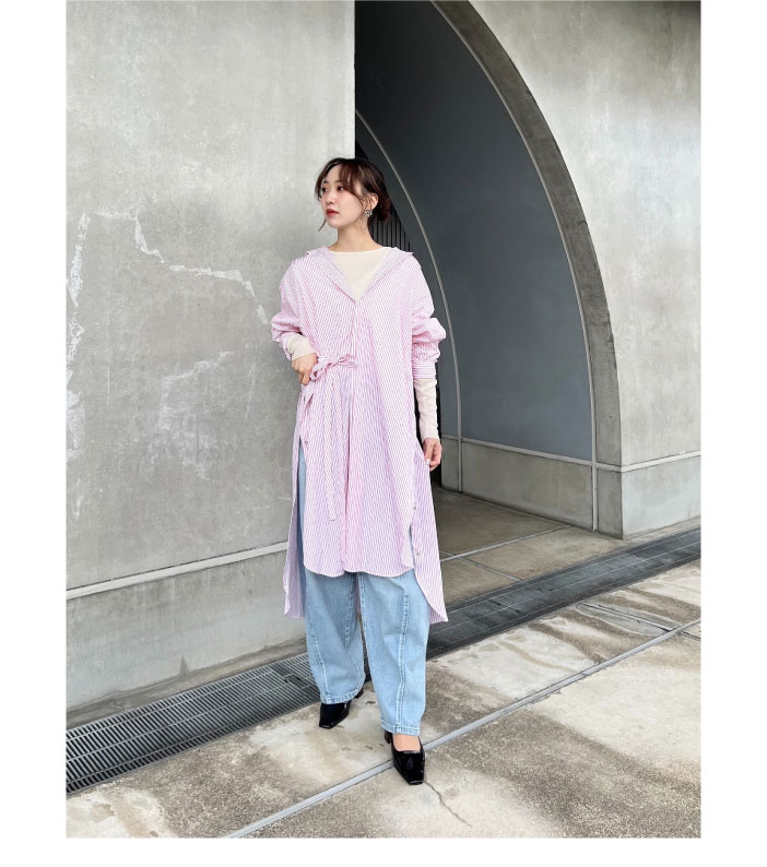 シャツドレスは再度の紐の結び方で様々な着こなしが楽しめるので、気分に合わせてアレンジ可能です。