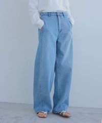 合わせたデニムは、明るいカラーで合わせやすく今年らしいカーブシルエットで履くだけでおしゃれな印象に決まる一押しデニムです。