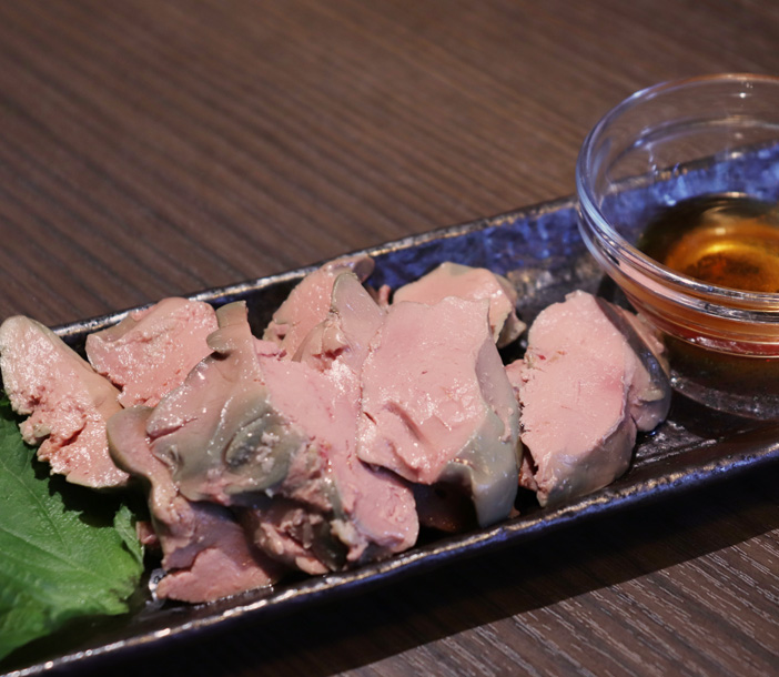 じっくりと丁寧に低温調理し白レバー刺し。