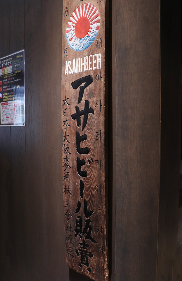 雰囲気のあるアサヒビールの看板。よく見るとハングルが書いてあります。