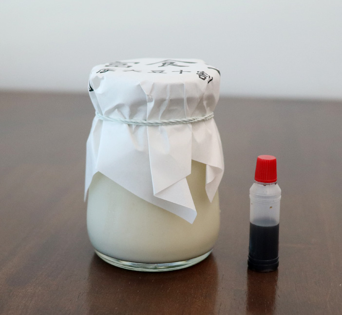 豆乳の甘みをしっかり感じるのでまずはそのまま味わって。コーヒーシロップを掛けると渋い甘みに変化。
