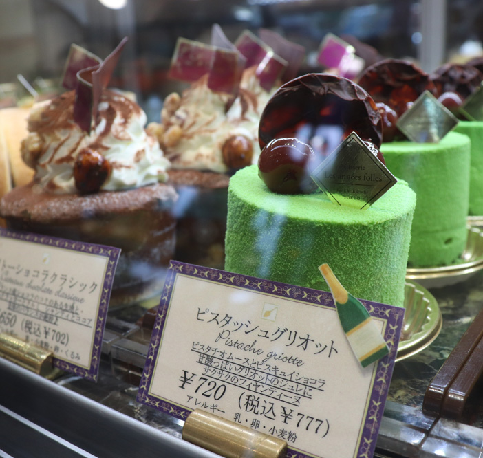 ショーウィンドーを飾る独創的で高級感のあるケーキたち。