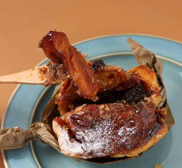 肉感を残してキャラメリゼしたりんごとチョコレートみたいに濃厚なプラムのコンポート、それにアーモンドクリームが合わさって個性的なハーモニーを紡ぎます。