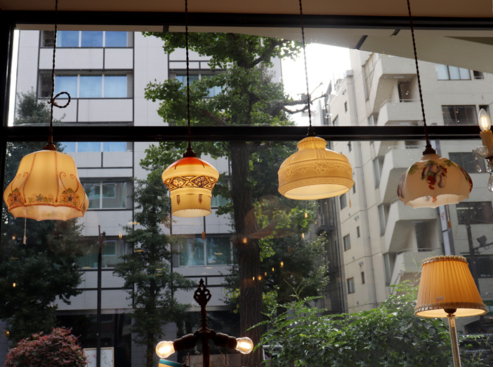 レザネフォールから代官山方面に少し上ると気になる雑貨店が出てきます。ガラス製品、食器、レースやキルト類など海外のアンティーク雑貨が棚いっぱいに陳列されています。奥に進むと昔ながらのタイプライターやミシン、糸車など、ここでしか出会えない商品で溢れていて、つい寄り道したくなるお店です。
