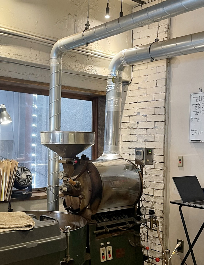 店の奥で焙煎