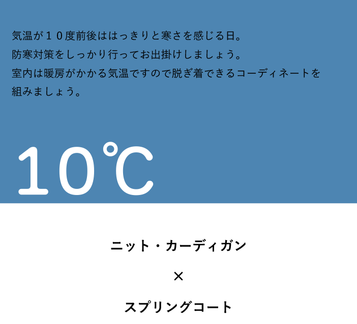 柔らかな暖かさを感じられる頃ですが朝晩は冷え込む日も。そこで今回は、気温別におすすめの春アウターを使ったコーディネートを紹介します。おしゃれも快適さも叶えましょう!