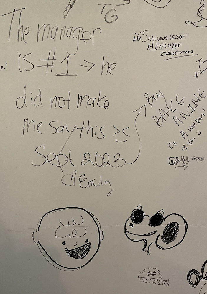 どれだけカジュアルかというと、店内はお客さんが書いたであろう 落書き ウォールアートとチェキがびっしり。常連さんだけじゃなく海外からの旅行者にも人気の様です。