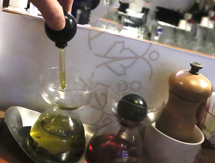 付けダレもグローバル。酢醤油の他にトリュフオイルや岩塩、ピリ辛ゴマ味噌タレ、オリーブケッパータプナードソース、トマトソースなど多彩。