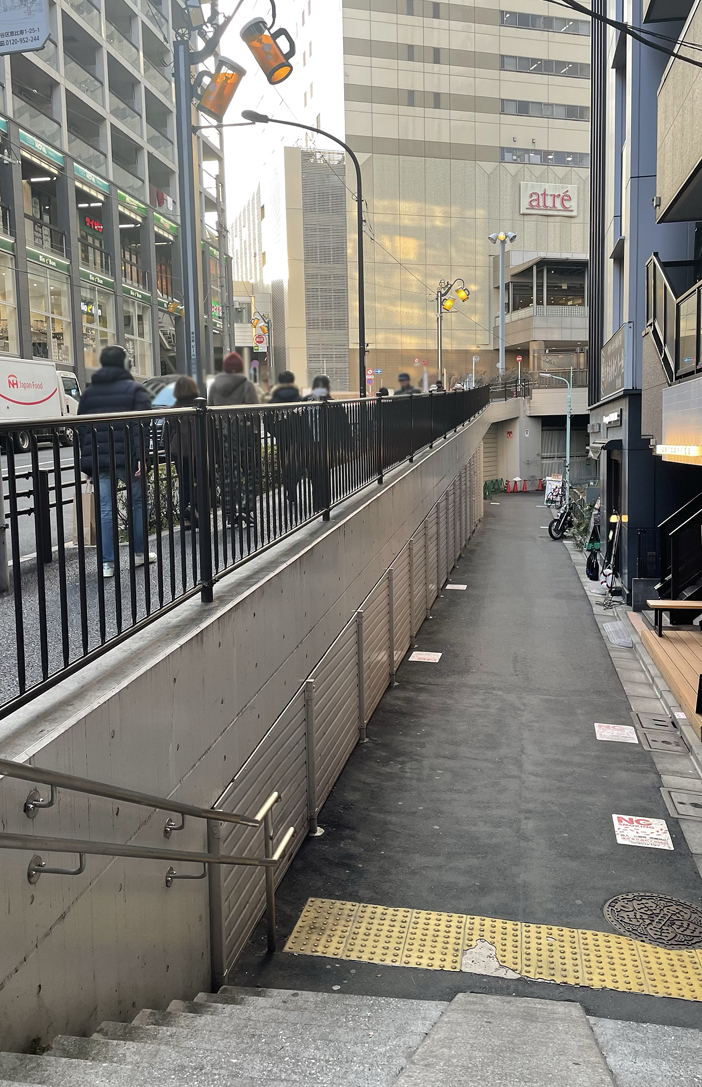 ロータリーから降りてくる道から見ると1段下がった通りにあるため、ちょっと解りにくい場所にあります。