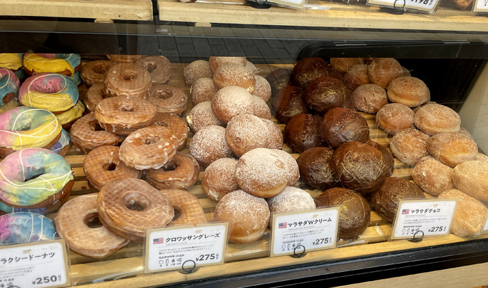 世界のドーナツが楽しめるというコンセプトで商品名の横にそれぞれ国旗が付いています。ホームページによるとオランダ、スペイン、アメリカなどのドーナツを展開しているそうですが、恵比寿店は今のところアメリカと日本のラインナップ。今後に期待です。