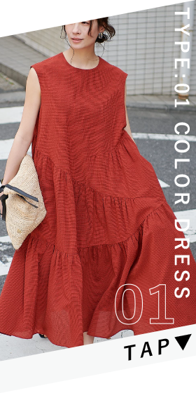 軽やかな素材と開放感のあるシルエットが魅力のワンピースは、街中でもリラックスムードを纏う。リゾート気分をさりげなく取り入れて暑い日も心地よく、気分まで軽やかに。