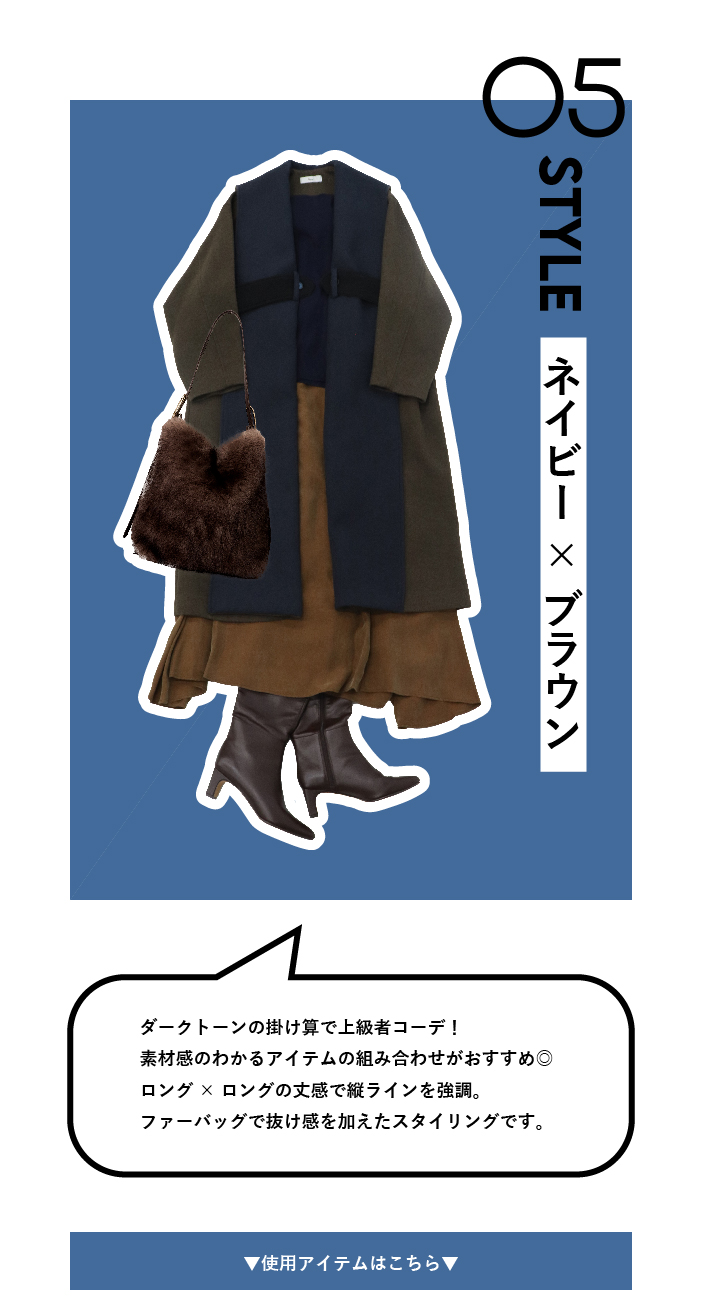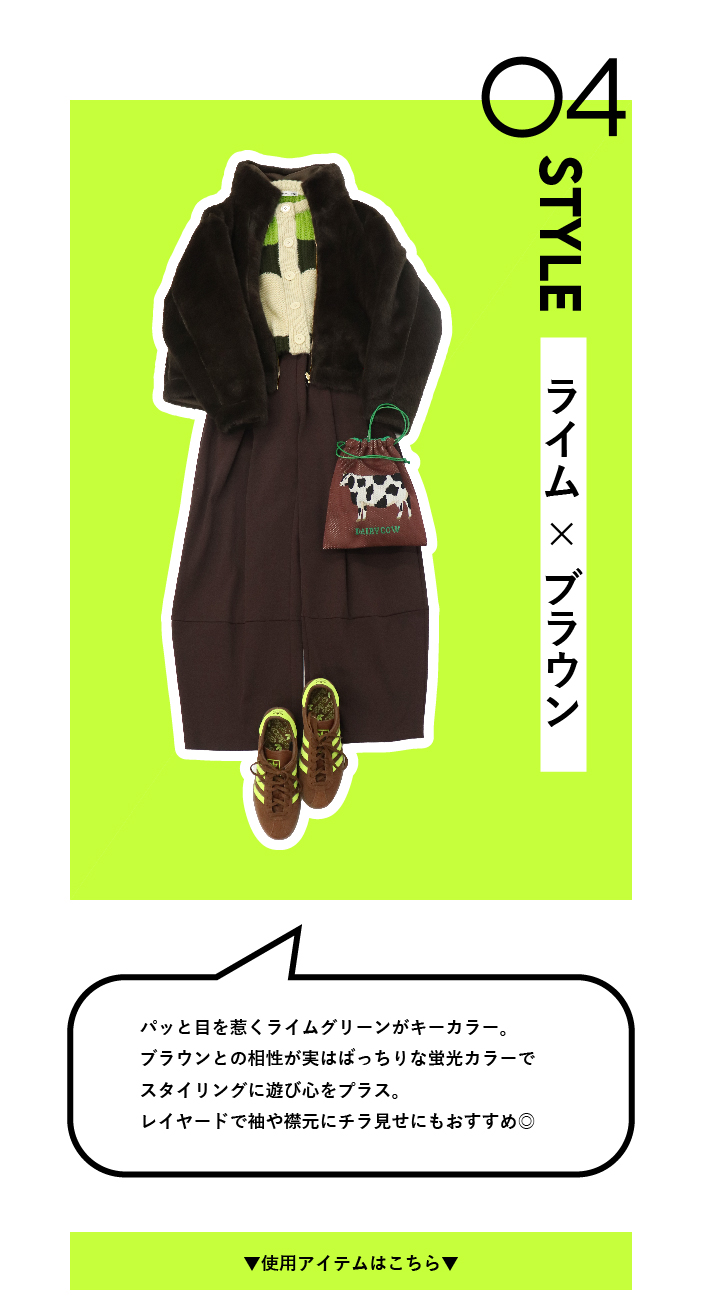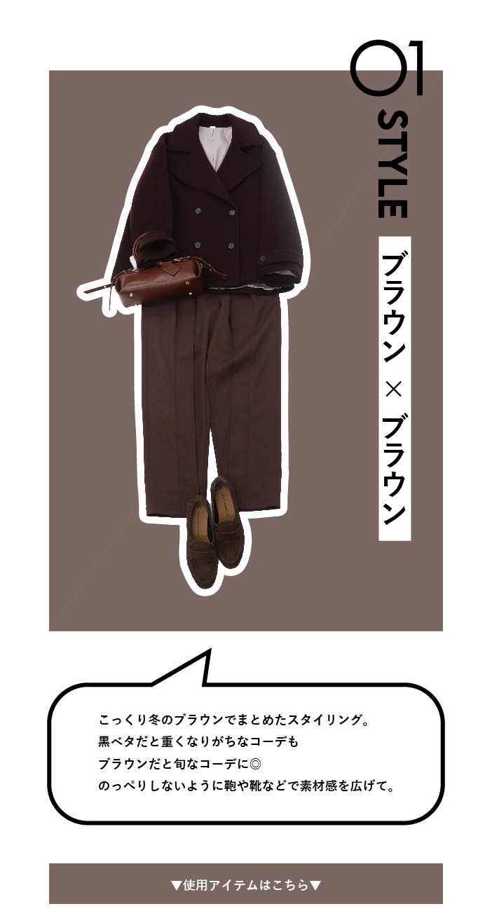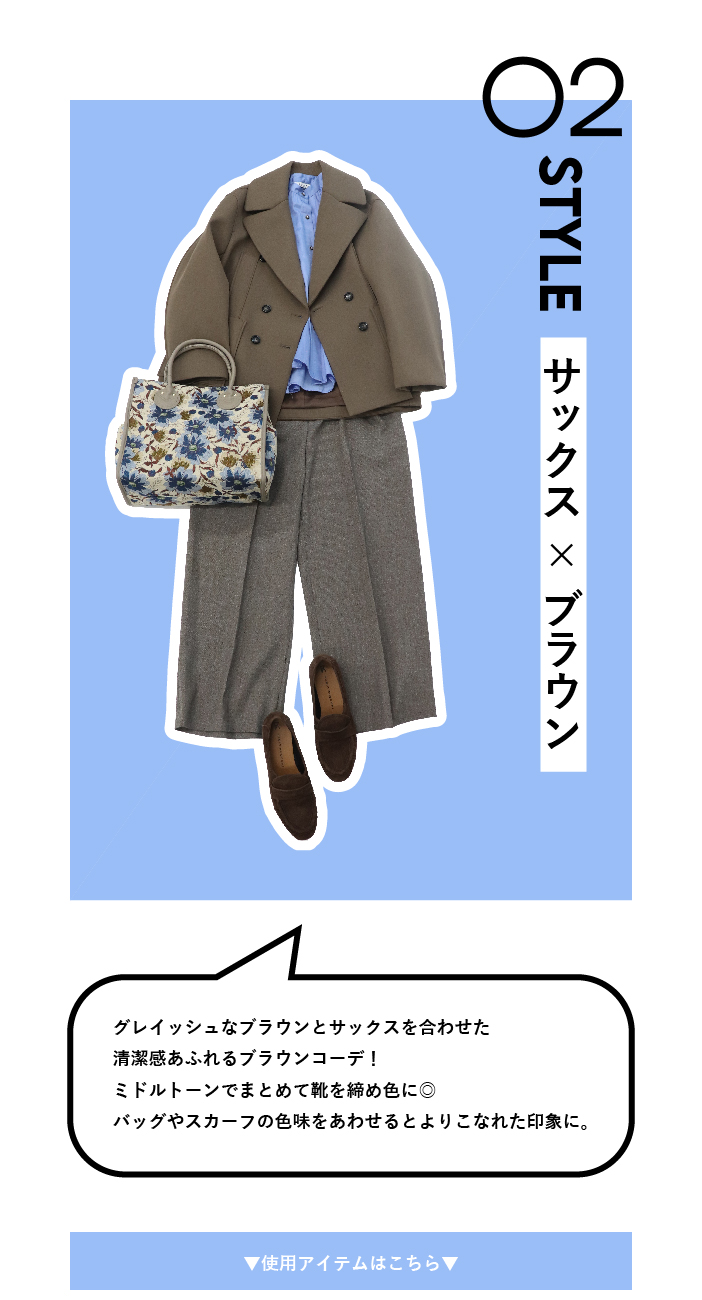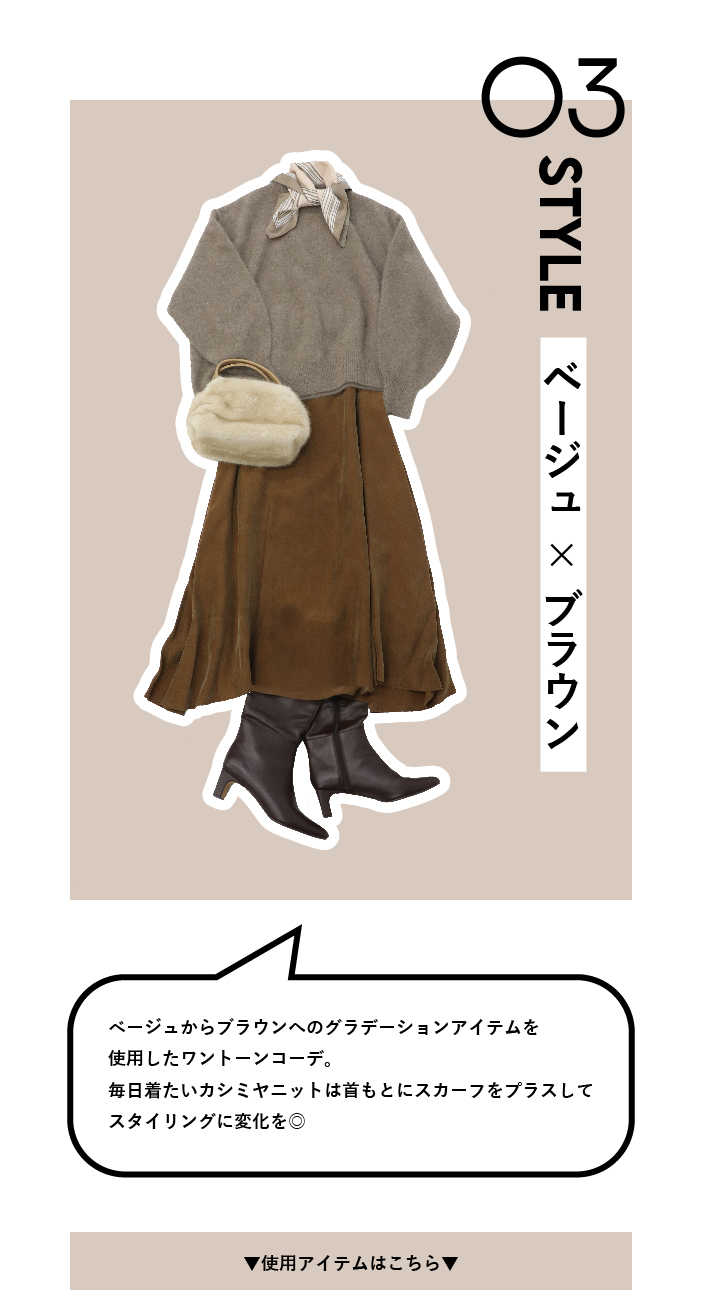 PICK UP 今年のトレンドカラー【モカ・ムース】。秋冬スタイリングに馴染みのいいブラウンカラーを味方につけて今年らしいスタイリングにアップデート! シャルムビーバーショートコートジネス¥46,200 WベルトショルダーBAGスリーフォータイム¥9,350 fluttering tapered pantsドレスレイブ¥24,200 <FABIO RUSCONI>ELLEFFE loafersドレスレイブ¥34,100 ▼ブラウンアイテム ワンショルダーコーデュロイパンツジネス¥21,450 ミンクエコファーブルゾンスリーフォータイム¥18,700 bright coating gather skirtドレスレイブ¥29,700 <B7>powder twill P coatドレスレイブ¥42,900 フリルカラーグロウブラウスジネス¥24,200 ジャガードスクエアトートスリーフォータイム¥7,590 <B7>shoulder wide pantsドレスレイブ¥22,000 ▼サックスアイテム <BAUM UND PFERDGARTEN>MENJAドレスレイブ¥33,000 クロック柄スカーフジネス¥5,500 fox cashmere vneck pulloverドレスレイブ¥25,300 yak fox crewneck pulloverドレスレイブ¥24,200 マス柄スカーフジネス¥4,400 ピーチスキンマーメイドスカートジネス¥16,500 ミンク風エコファー2wayボックストートスリーフォータイム¥7,590 ▼ベージュアイテム キラキラツイードチルデンニットジネス¥18,150 キラキラツイードボリュームスリーブニットジネス¥18,150 ソフトシャギーW起毛カーディガンスリーフォータイム¥7,590 ファームートンブルゾンジネス¥19,580 【MALCHAL TERRE】フリンジニットカーディガンセピカ¥22,000 ポンチワイドカービーパンツジネス¥15,180 ミュンヘンJS3996 MUENCHEN W【adidas Originals】ジネス¥15,400 ▼ライムアイテム 【RISLEY】2WAYロゴニットセピカ¥17,380 ラメフェザーモールカーディガンセピカ¥7,590 カラーリブタートルタートルセピカ¥4,290 【WEB先行販売】バイカラーロングコートセピカ¥19,800 【WEB先行販売】バイカラーロングコートセピカ¥19,800 ピーチスキンマーメイドスカートジネス¥16,500 ワンハンドルエコファートートバッグセピカ¥7,590 ▼ネイビーアイテム <814 Ezcaray>Twist Frameドレスレイブ¥19,800 ニットプリーツAラインワンピース【WEB限定】ジネス¥13,200 タックプリーツスカートスリーフォータイム¥9,790 ミンク風エコファー2wayボックストートスリーフォータイム¥7,590 ワンハンドルエコファートートバッグセピカ¥7,590 ブライトボアミトンスリーフォータイム4,290 フラッフィーハンドウォーマースリーフォータイム¥2,750 冬の新作を見る 他のPICK UPを見る サイトTOP