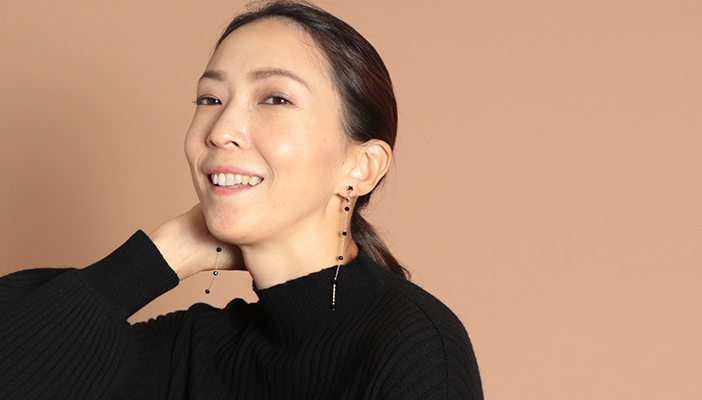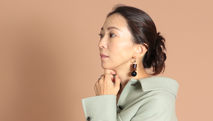 上品な中にアシンメトリーでモードなスパイスもプラス。