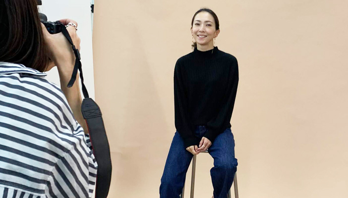 コラボアクセサリーの撮影は高橋さんがアクセサリーとウェアの