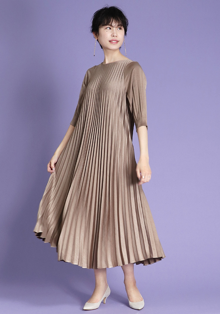 柔らかい素材で落ち感のあるエレガントなドレスや