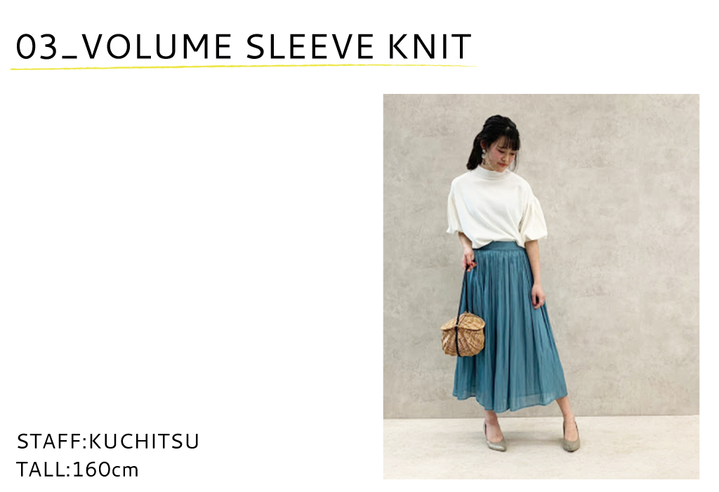 肩と袖にタックが入った女性らしいアイテムになっています。生地が柔らかくコットン混で着心地がよく、風通しも良いのでこれからの季節に最適です。袖口にゴムがあり長さ調節が出来るのも嬉しいポイントです。トレンドのカラーアイテムのギャザースカートと合わせてさわやかな雰囲気にしました。