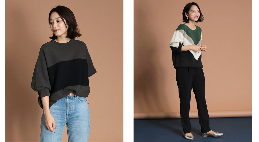 一気にモードな雰囲気になるラインデザインのニット。