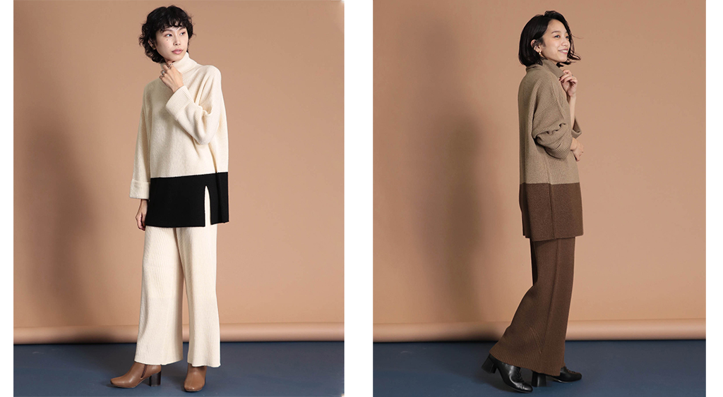 カジュアル感のあるニットのセットアップ。