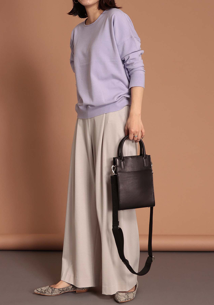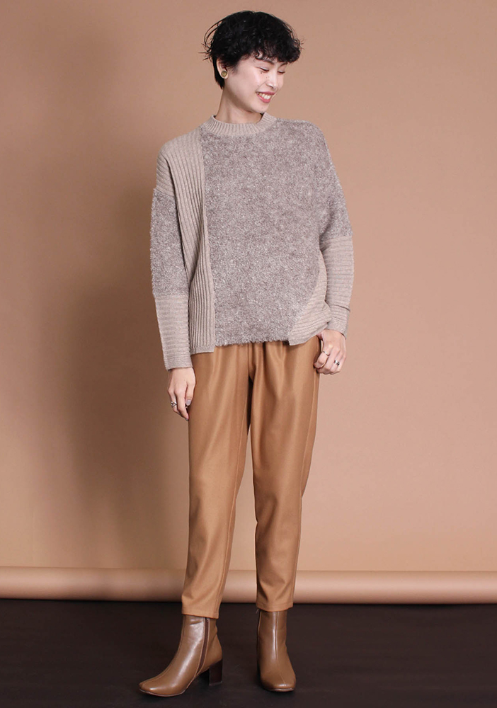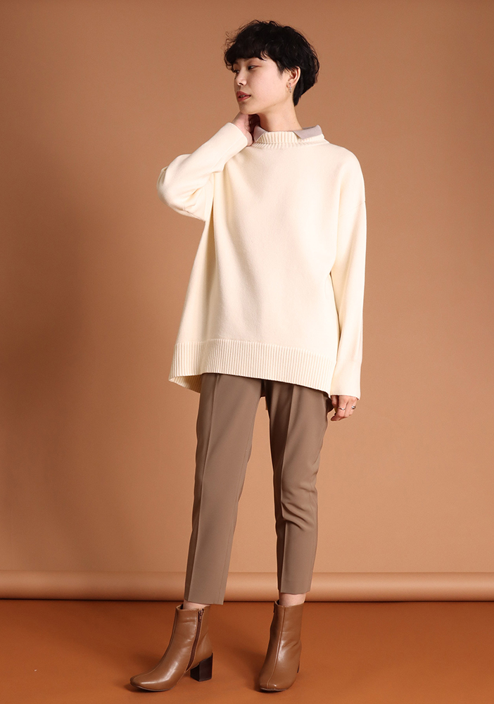 すそがしぼられていないタイプのニットはボトムを選ばず