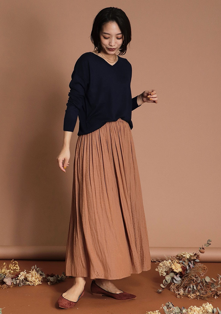 ワイドパンツからロングスカートまで幅広く合わせられます。