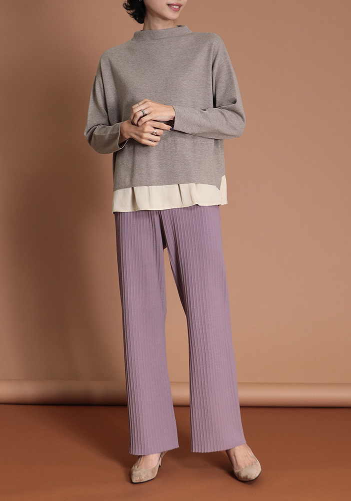 【SUGAR ROSE】プリーツ風リブニットパンツ