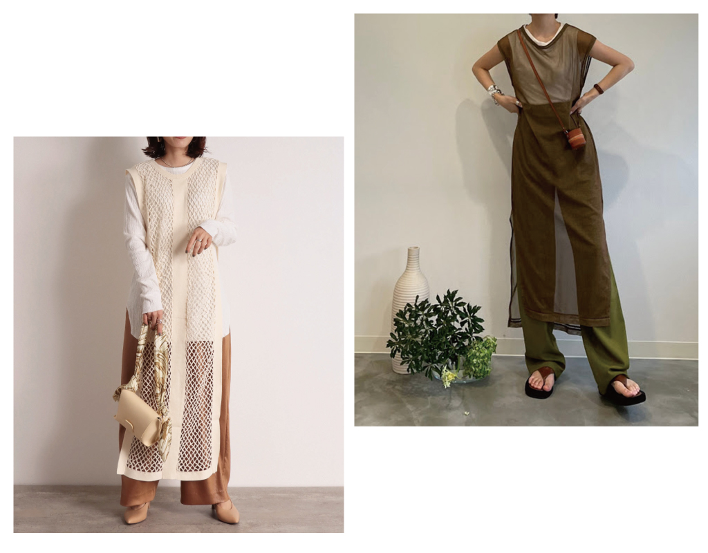 注目ブランド「アガウド」からの一押しは様々なタイプのメッシュワンピース。