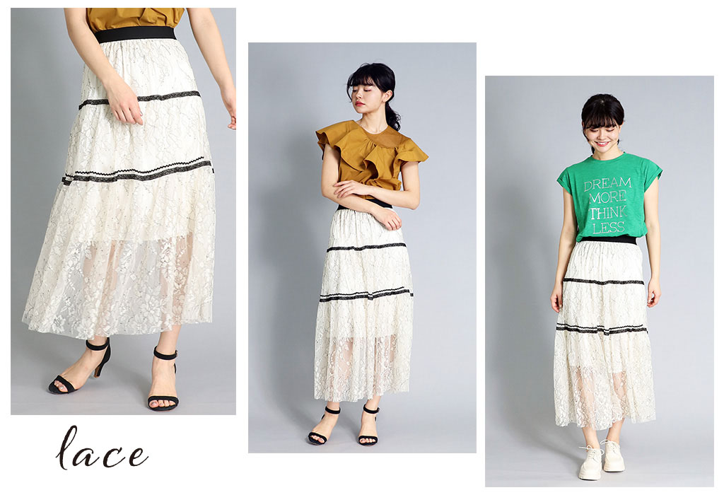 ウエストゴム仕様で穿き心地もよく、自然な透け感が品のある印象に仕上げてくれます。