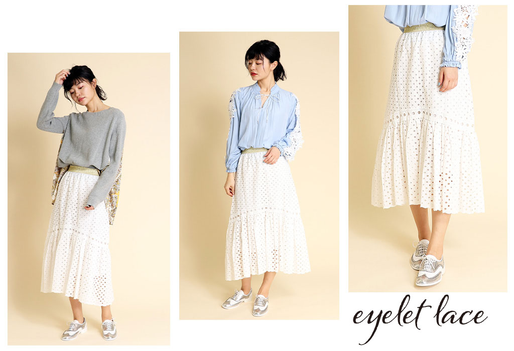 キャッチーなスカートは春の装いを華やかにしてくれます。