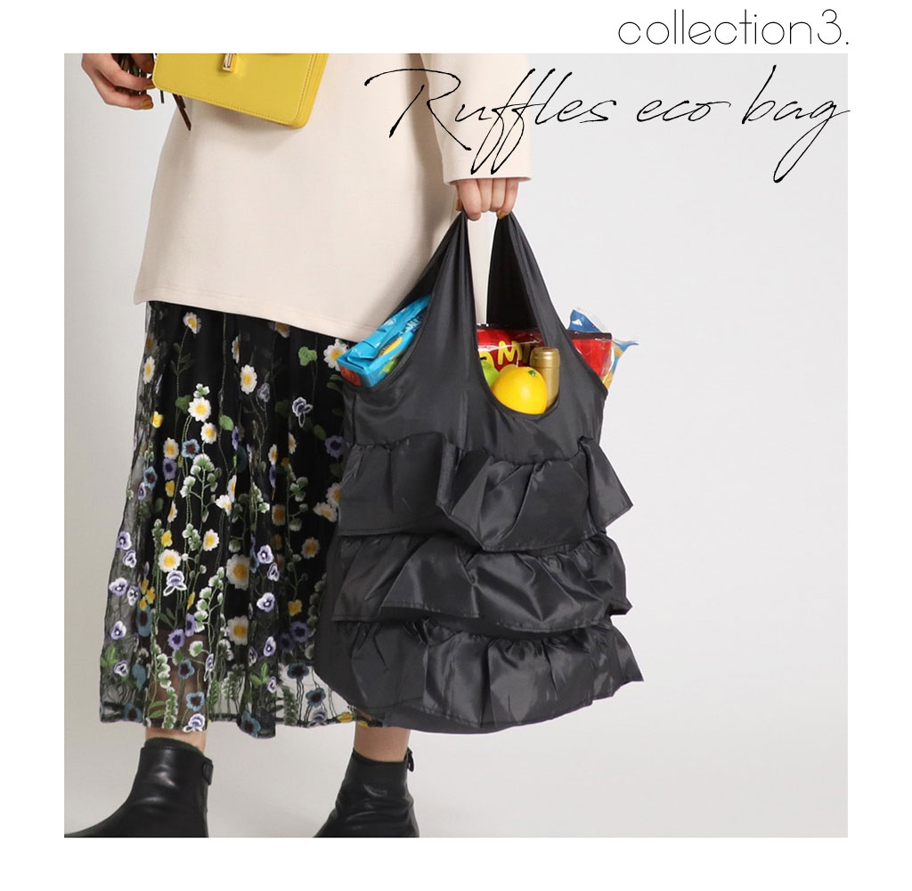 ボリュームたっぷりのフリルが可愛いエコバッグ。