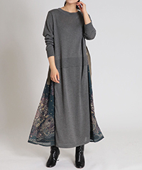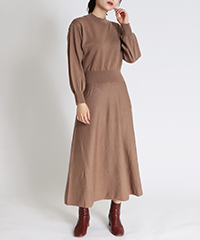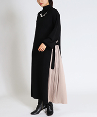 ワンピースはウエストから上部分・袖がリブデザインとなっているので、細身え効果抜群。