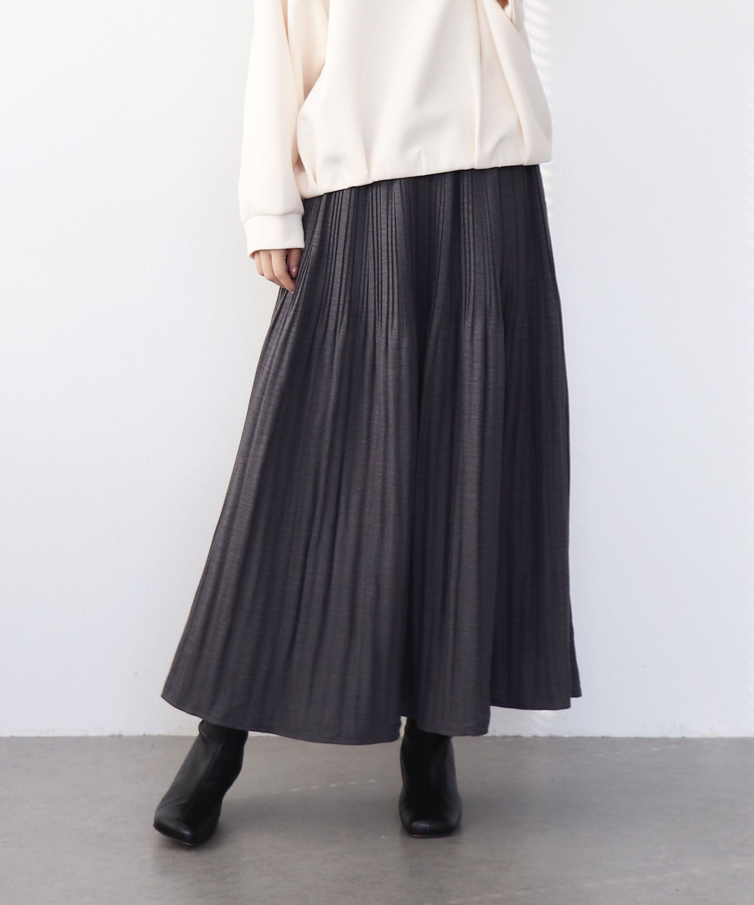 ふんわりとしたぬくもりと軽やかさを兼ね備えた「ミストウールタッチプリーツスカート」。