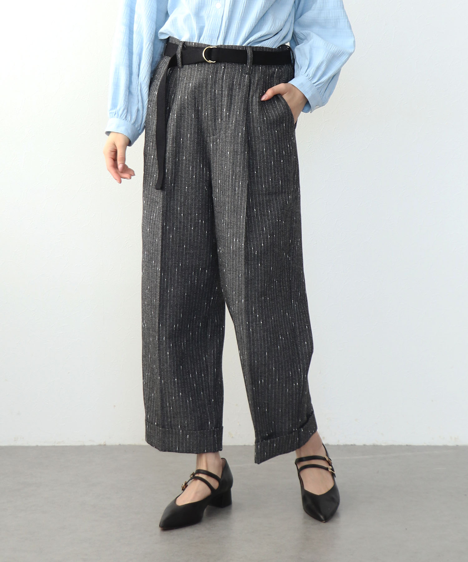 自然なネップの表情が魅力の「ネップワイドパンツ」は、コーディネートに温かみとこなれたムードをプラスしてくれる、デイリーに活躍する優秀アイテムです。