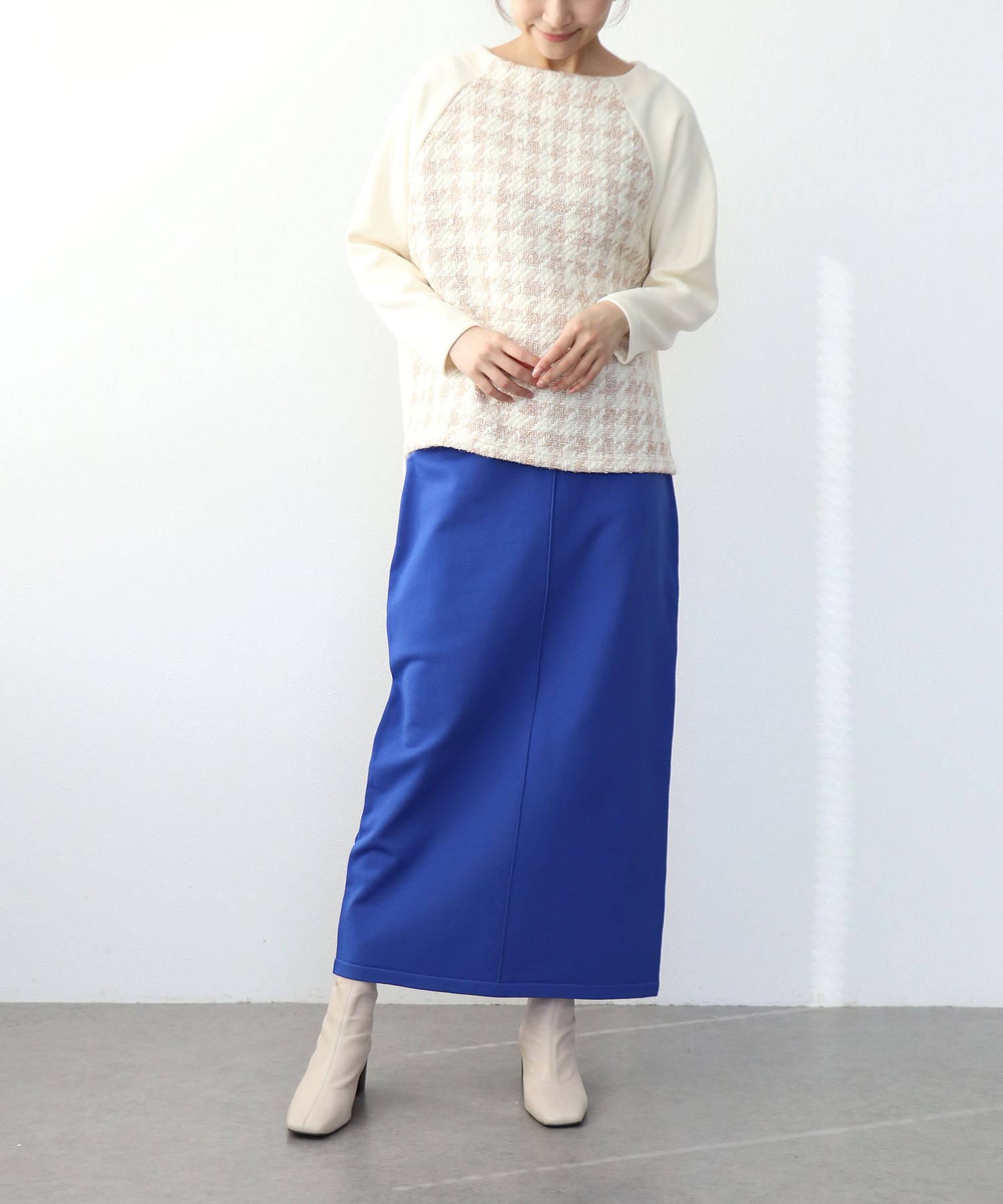 構築的なハリ感素材でつくる、美シルエットのニットスカート。